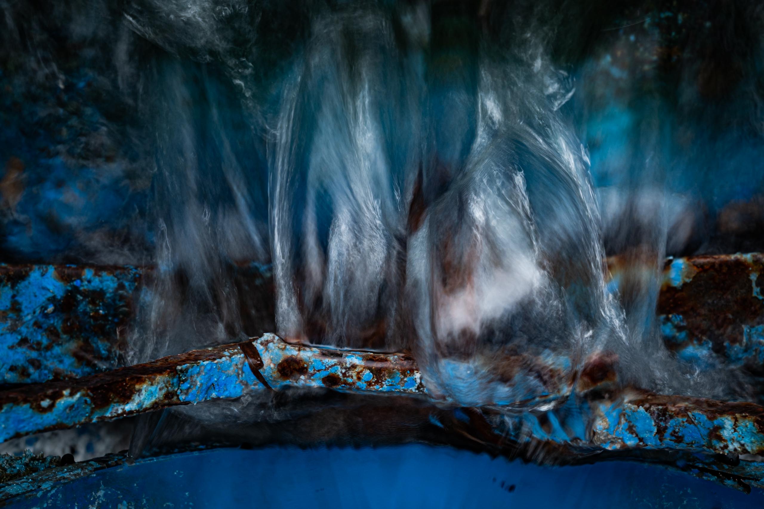 In the region of Fez, many sites once dedicated to thermal baths have been abandoned. Yet the springs continue to flow; the sources remain alive. In some places, vegetation has reclaimed its place in the water, while elsewhere, open channels built long ago reveal the striking mineral richness of the land through the colours carried by the flowing water.
