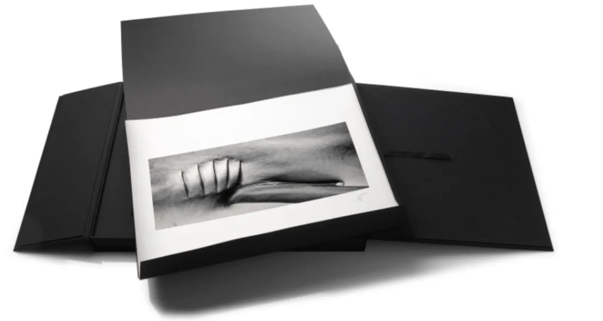 Limited to 100 large-format copies (33 × 44 cm), each book is signed and presented in a linen-bound box together with a portfolio of three original 60 × 45 cm prints, created with three different fine-art techniques: