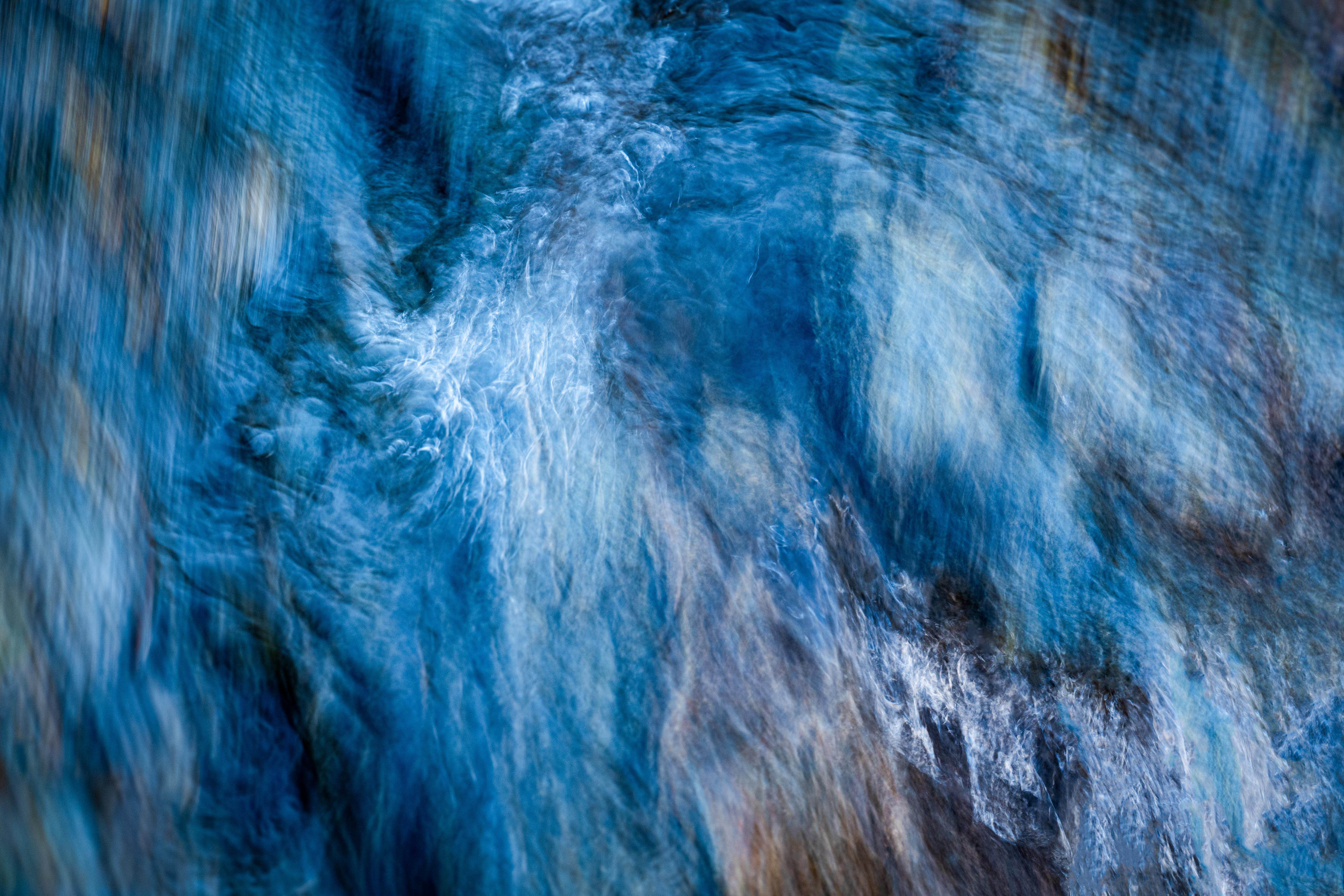 The images of water alone are fulfilling — letting myself be guided by its movement, capturing its moods, its dialogue with rock, plant, ice, and snow. One might think repetition would come quickly, but it never does — it is never the same water, nor the same Jean-Marie. The light is always changing.